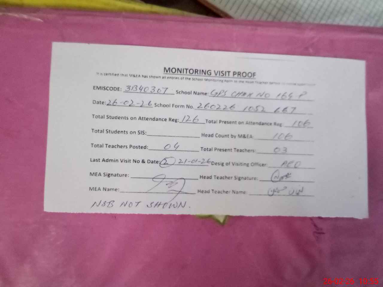 | Certified that this School was Inspected by the Undersigned MEA/DMO Today and the Information Stated Above is as Per Record. | |||||