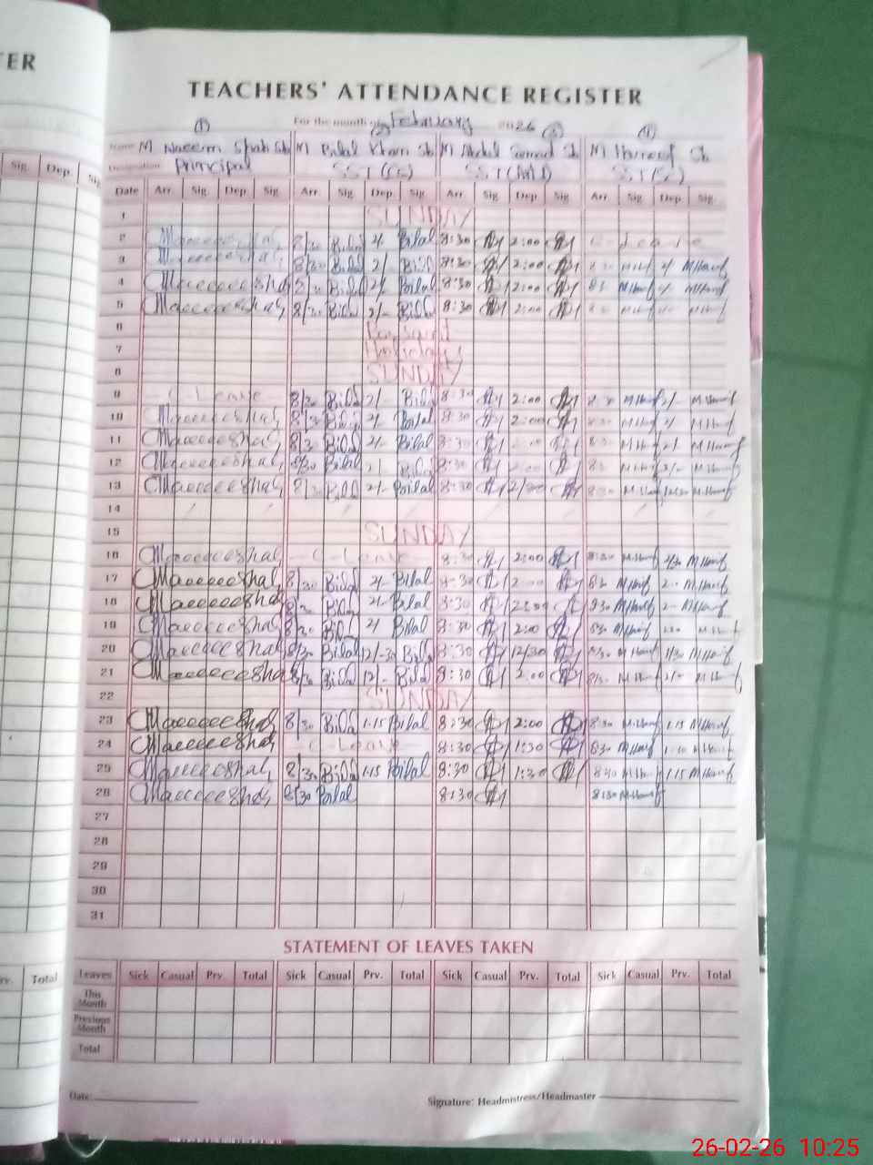 | 33**** | Ab**** Qa**** | SST Arts | Regular | 0 | 0 | 0 | 0 | 0 | 0 | 0 | 0 | 0 | Casual |