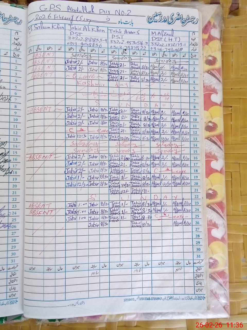 | 33**** | Mu**** Sa**** Kh**** | PST Science/Maths | Regular | 0 | 0 | 5 | 0 | 0 | 0 | 0 | 0 | 0 | Absent (Un-Authorized) |