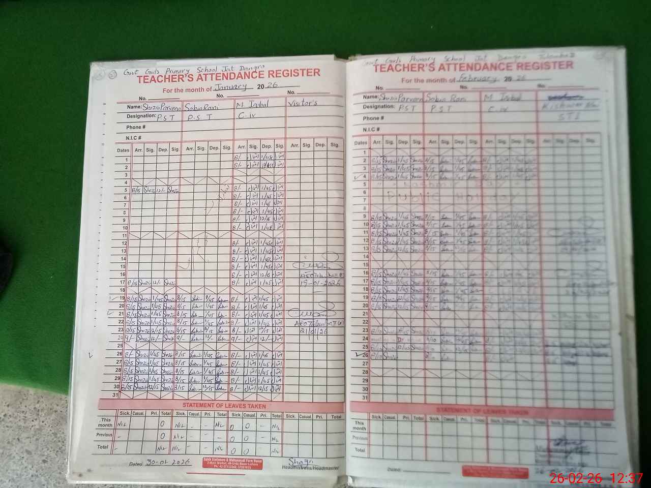 | Name: SH**** PA**** Designation: (School Headmaster's/Headmistress's) PST Phone/Cell Number: 03**** |