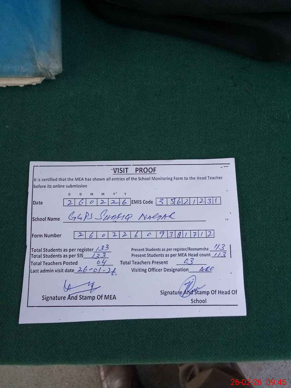 | EMIS Code: 35621231 | Name of School: GGPS SHAFIQ NAGAR | |||