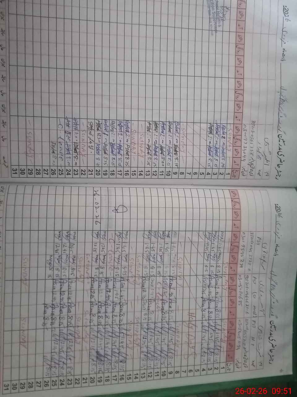 | CNIC | Full Name | Designation | R/C | Absence During Last Calender Month |