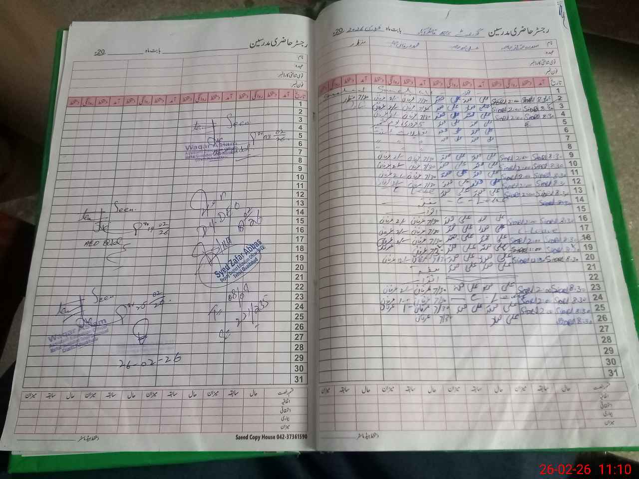 | CNIC | Full Name | Designation | R/C | Absence During Last Calender Month |