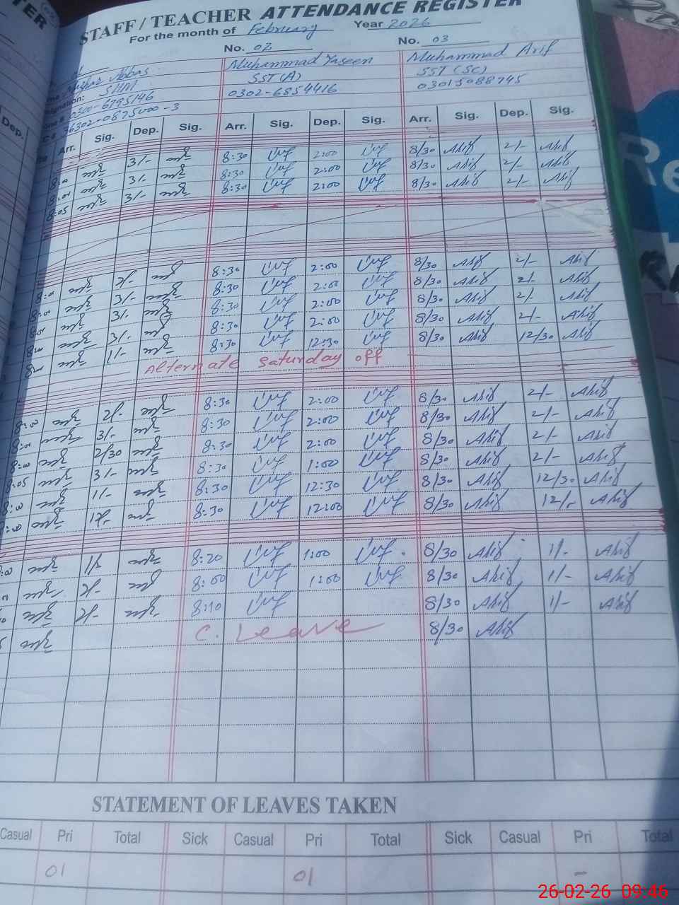 | Name: Ma**** Ab**** Designation: (School Headmaster's/Headmistress's) Head Masther Phone/Cell Number: 03**** |