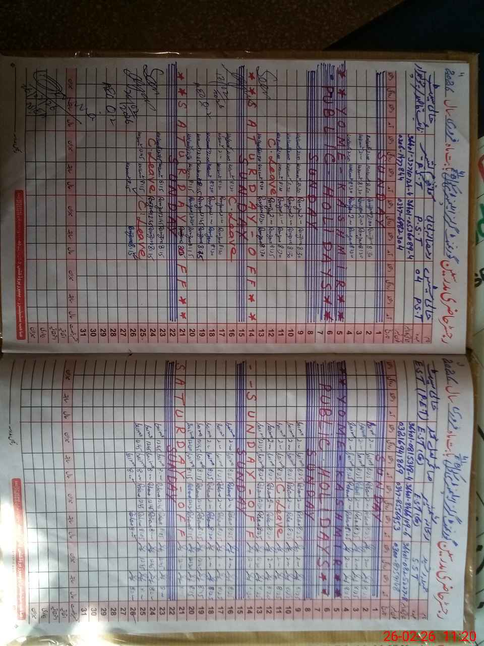 | Leave | Duty | Absent | Maternity | Medical | Ex- Pak |