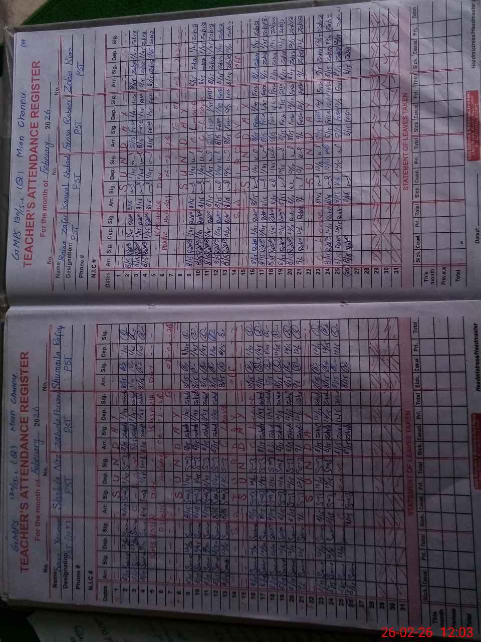 | 36**** | Sa**** Gh**** | PST | Regular | 1 | 0 | 0 | 0 | 0 | 0 | 0 | 0 | 1 | Casual |