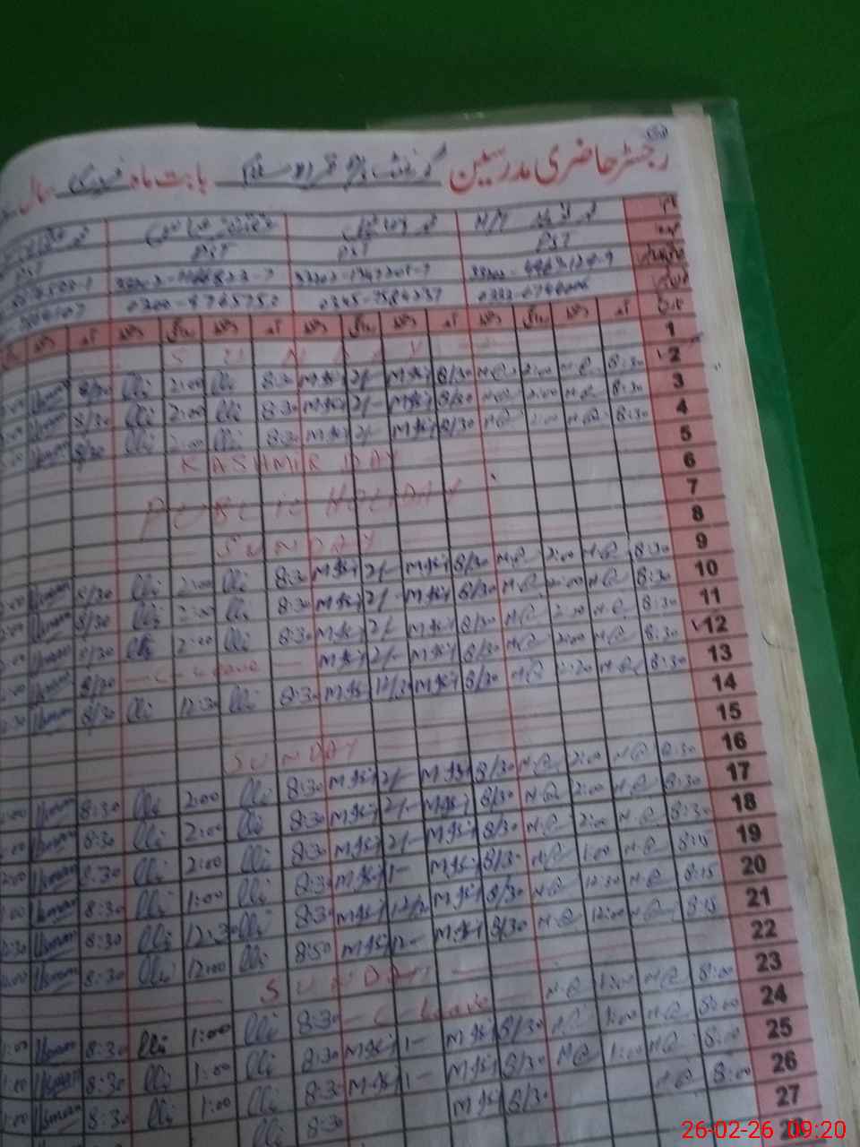 | Name: MU**** NA**** Designation: (School Headmaster's/Headmistress's) PST Phone/Cell Number: 03**** |