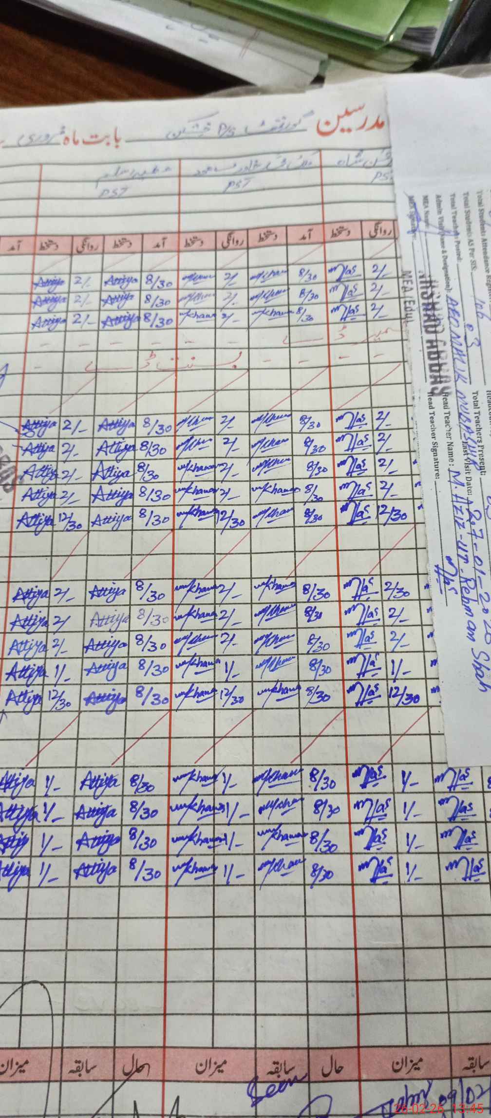 | Attendance Register | Head Teacher | MEA with School | Visit Proof |