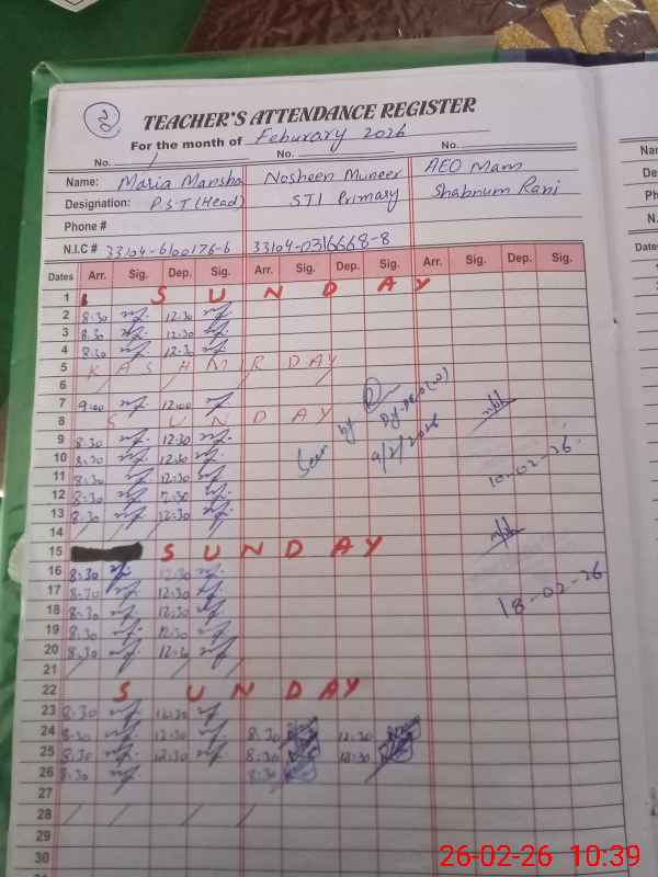 | Name: SH**** NO**** Designation: (School Headmaster's/Headmistress's) PTC Phone/Cell Number: 03**** |