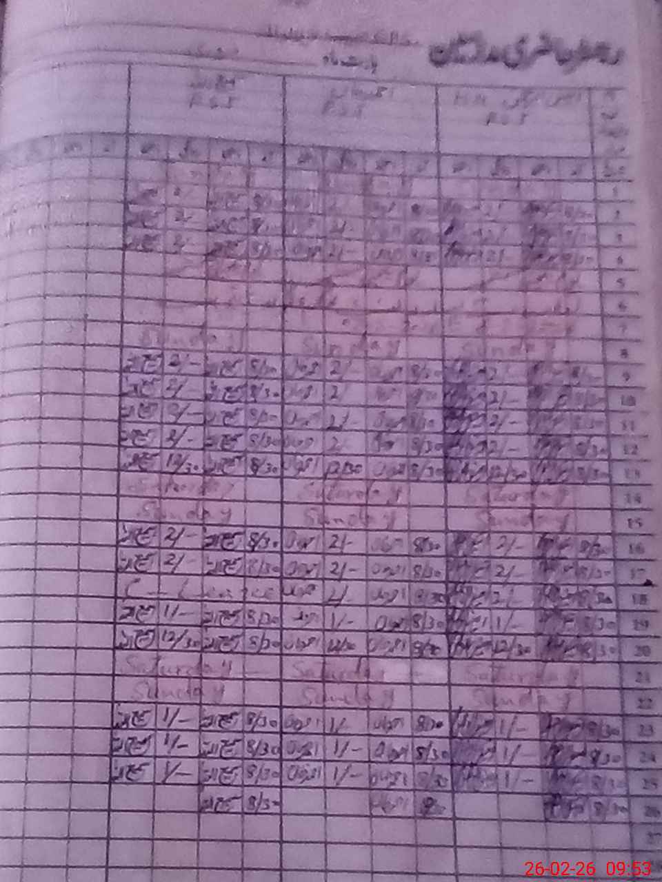 | CNIC | Full Name | Designation | R/C | Absence During Last Calender Month |
