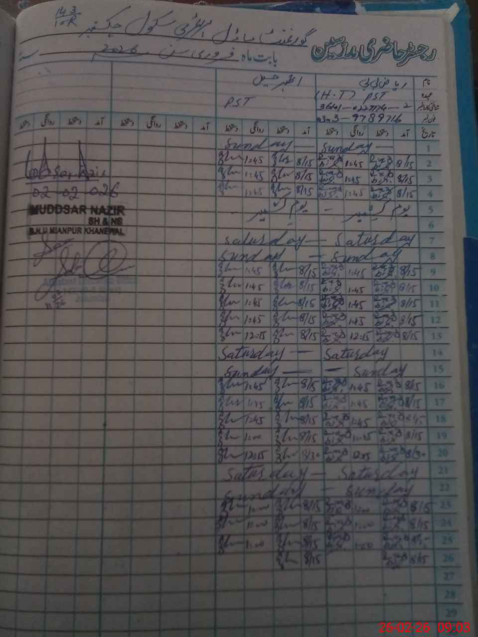 | Name: Ri**** Bi**** Designation: (School Headmaster's/Headmistress's) PST Phone/Cell Number: 03**** |