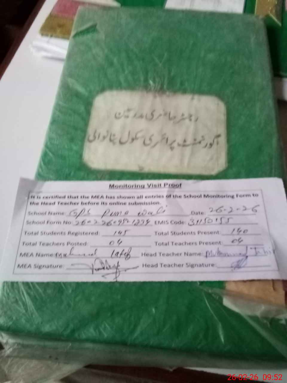 | EMIS Code: 31150155 | Name of School: GPS PUNA WALI | |||
