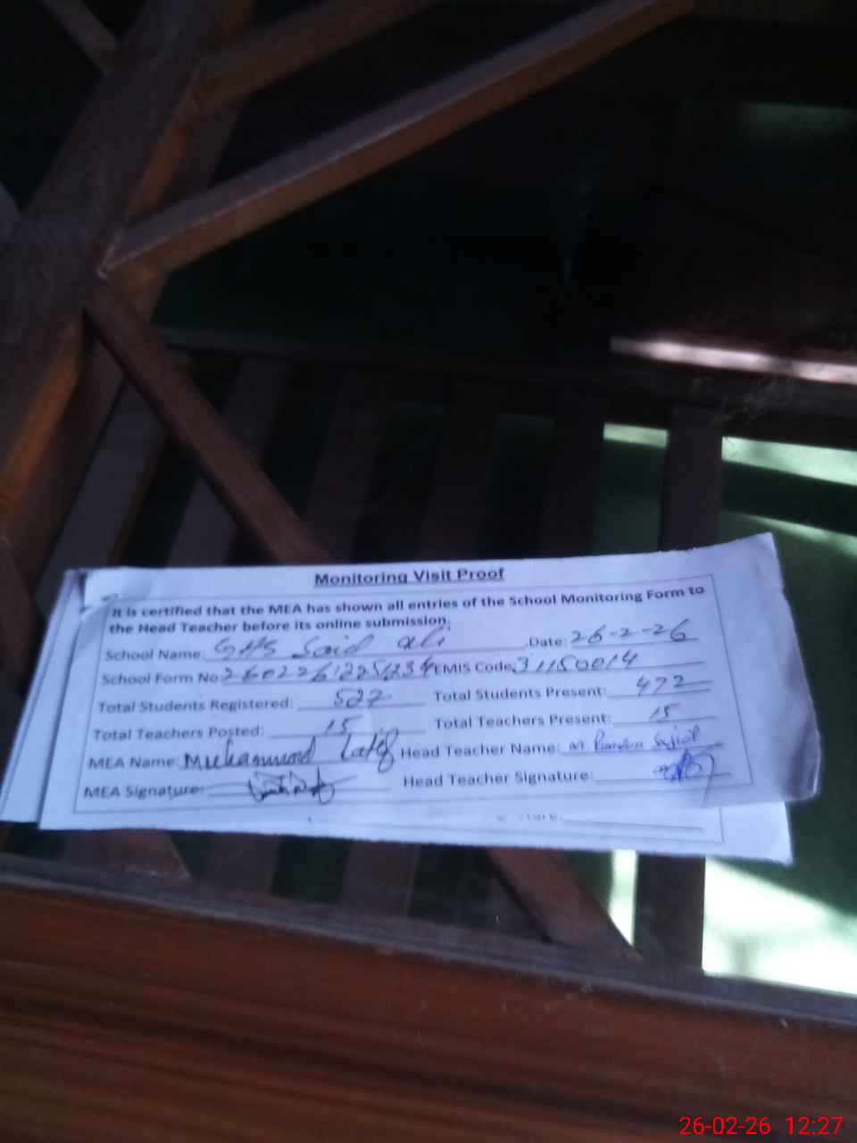 | EMIS Code: 31150014 | Name of School: GHS SAID ALI | |||