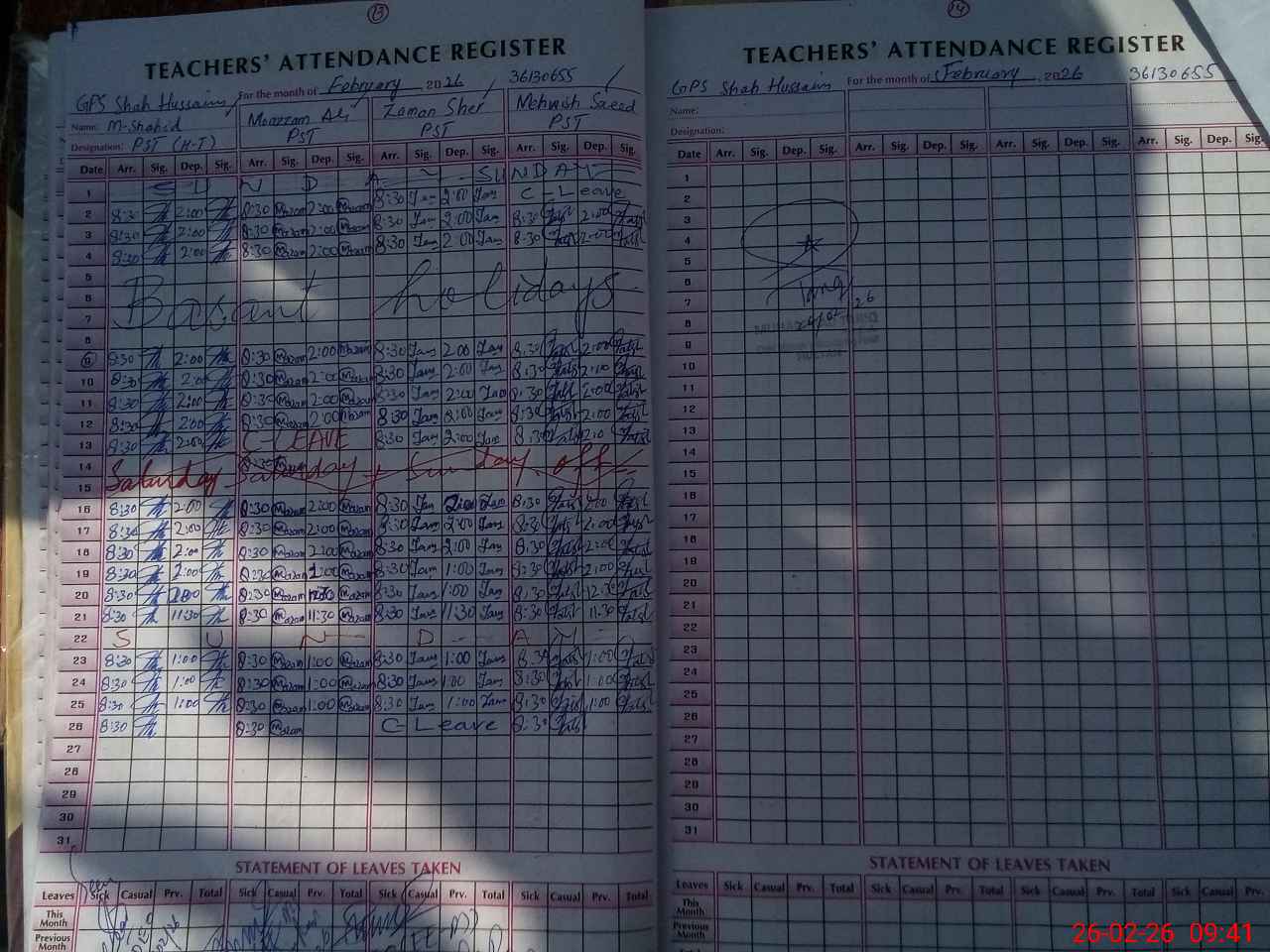 | 32**** | Mu**** Za**** Sh**** | PST Science/Maths | Regular | 0 | 0 | 0 | 0 | 0 | 0 | 0 | 0 | 0 | Casual |