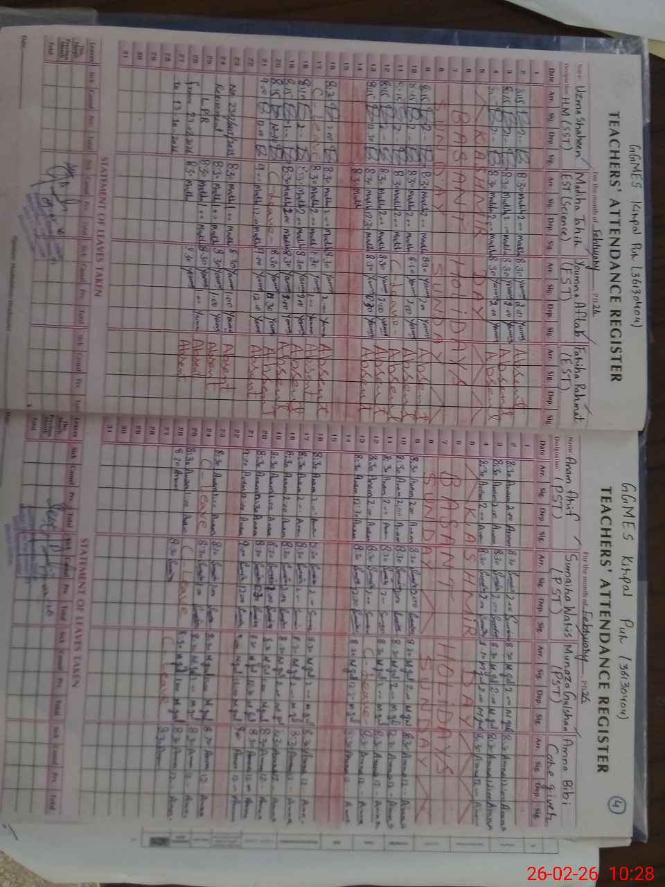 | 34**** | Fa**** Ra**** | EST English | Regular | 0 | 0 | 31 | 0 | 0 | 0 | 0 | 0 | 0 | Absent (Un-Authorized) |