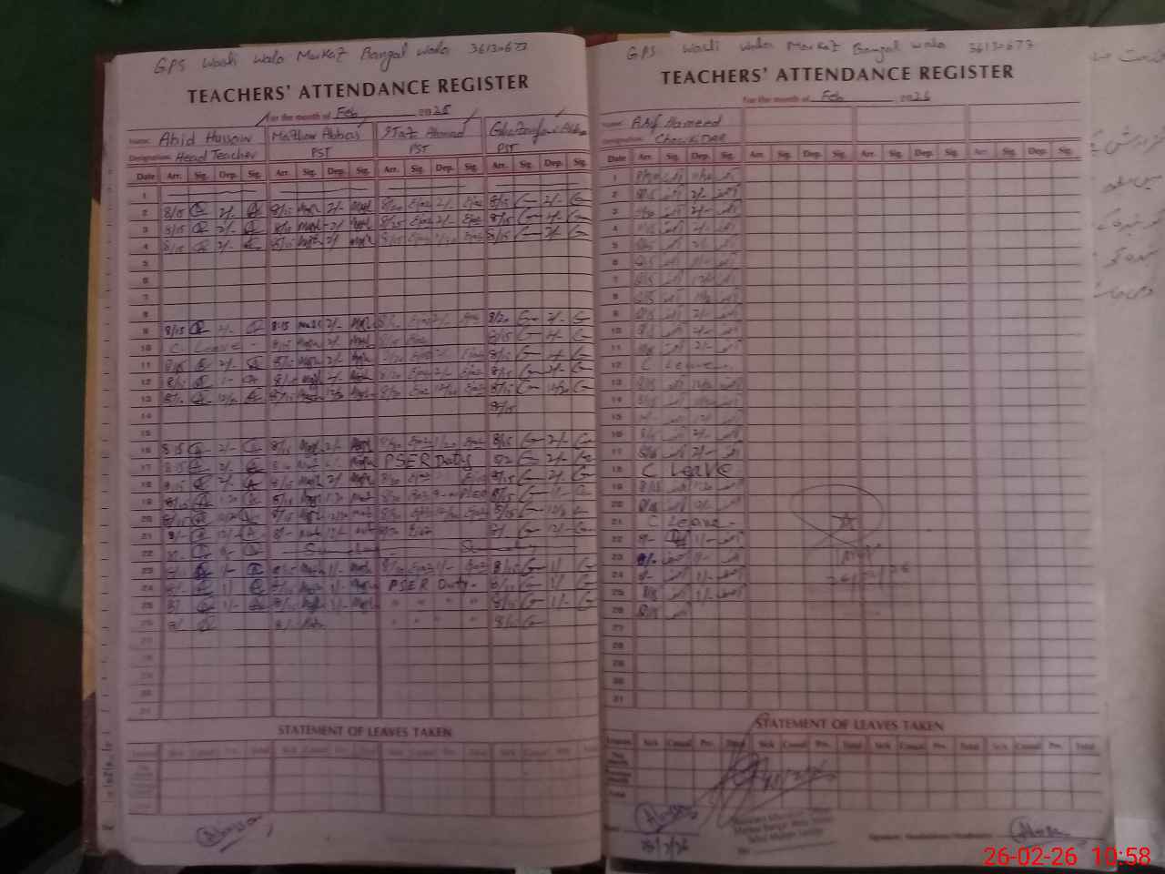 | Name: AB**** HU**** Designation: (School Headmaster's/Headmistress's) PST/PTC/JV Phone/Cell Number: 03**** |