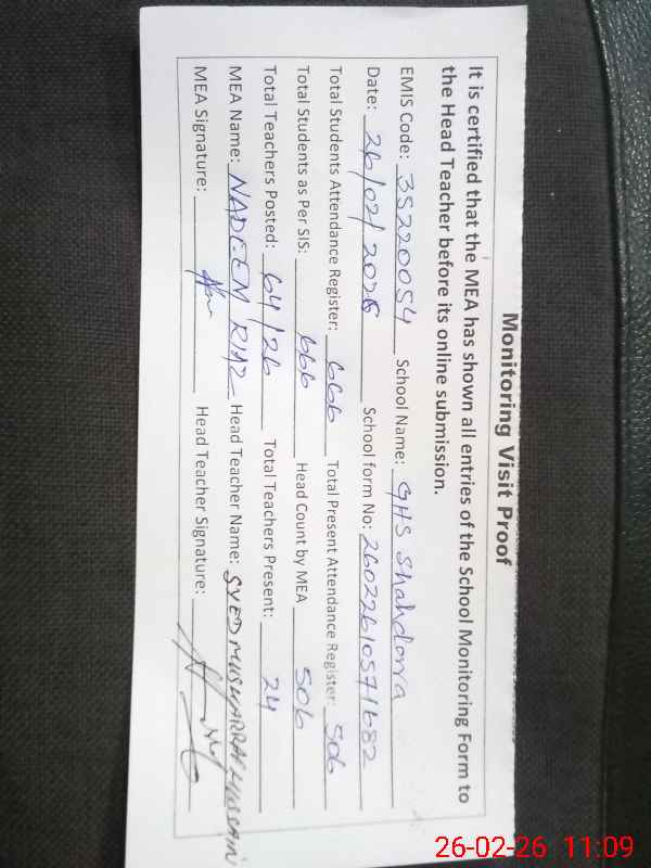 | EMIS Code: 35220054 | Name of School: GHS SHAHDARA | |||