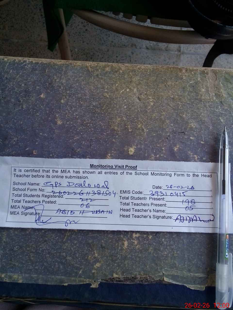 | Certified that this School was Inspected by the Undersigned MEA/DMO Today and the Information Stated Above is as Per Record. | |||||
