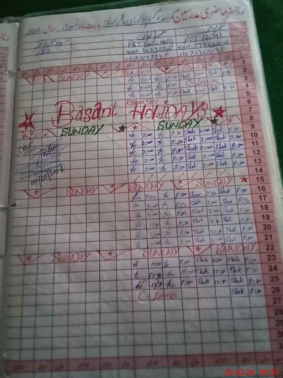 | Name: Sh**** ME**** Designation: (School Headmaster's/Headmistress's) PST Phone/Cell Number: 03**** |