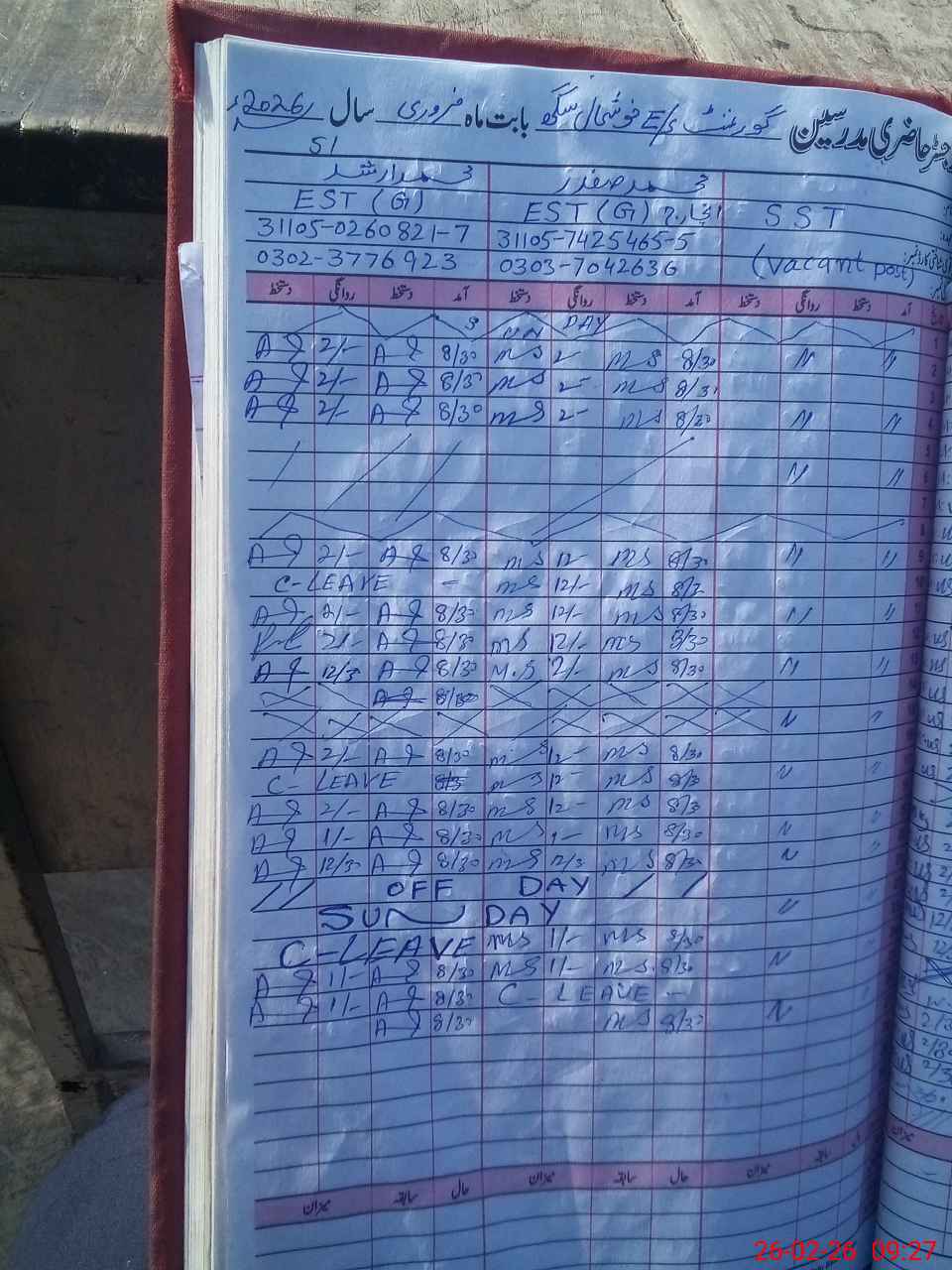 | Name: Mo**** Ar**** Designation: (School Headmaster's/Headmistress's) EST Phone/Cell Number: 03**** |