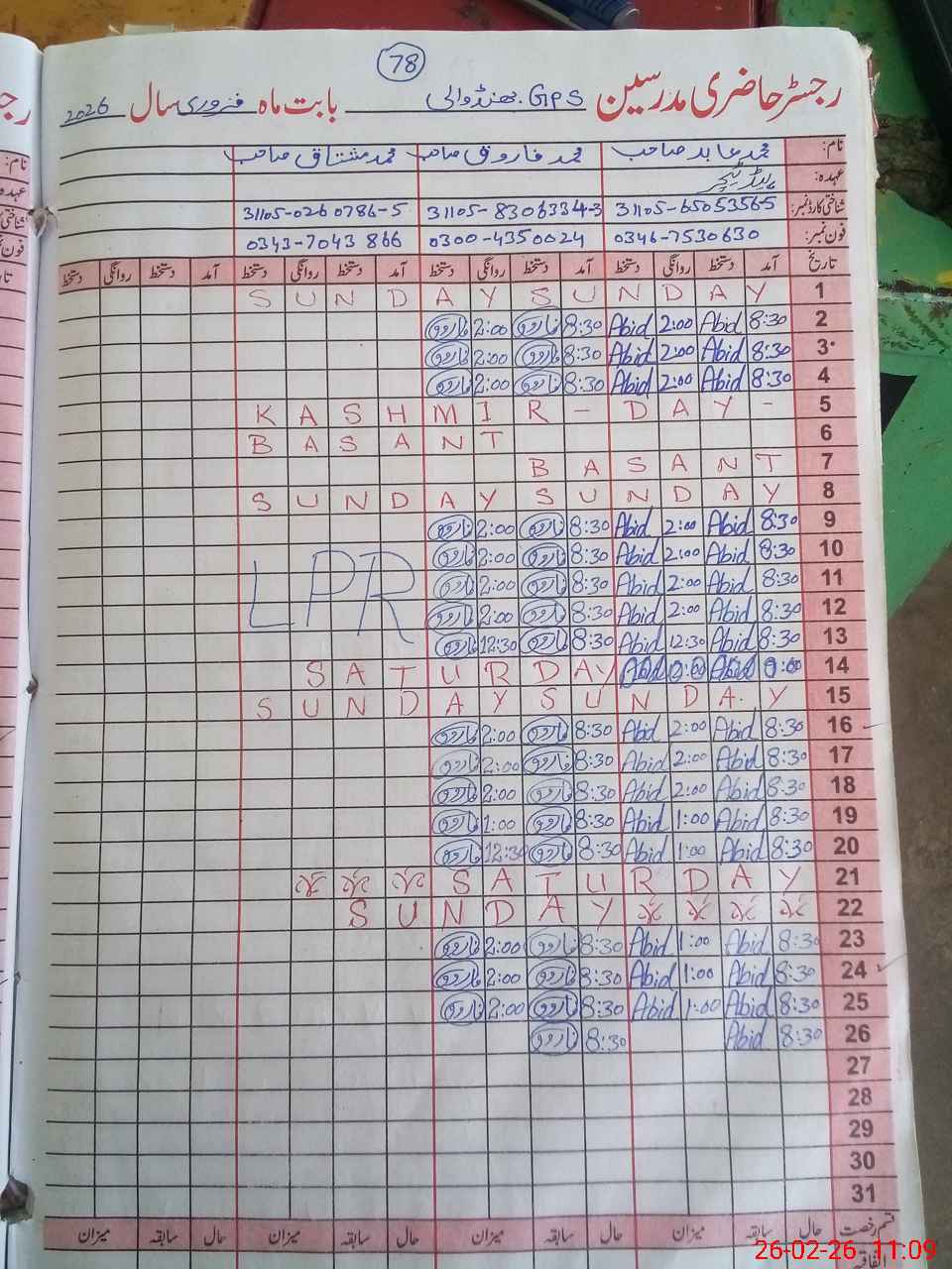 | Name: Mu**** Ab**** Designation: (School Headmaster's/Headmistress's) PST Phone/Cell Number: 03**** |