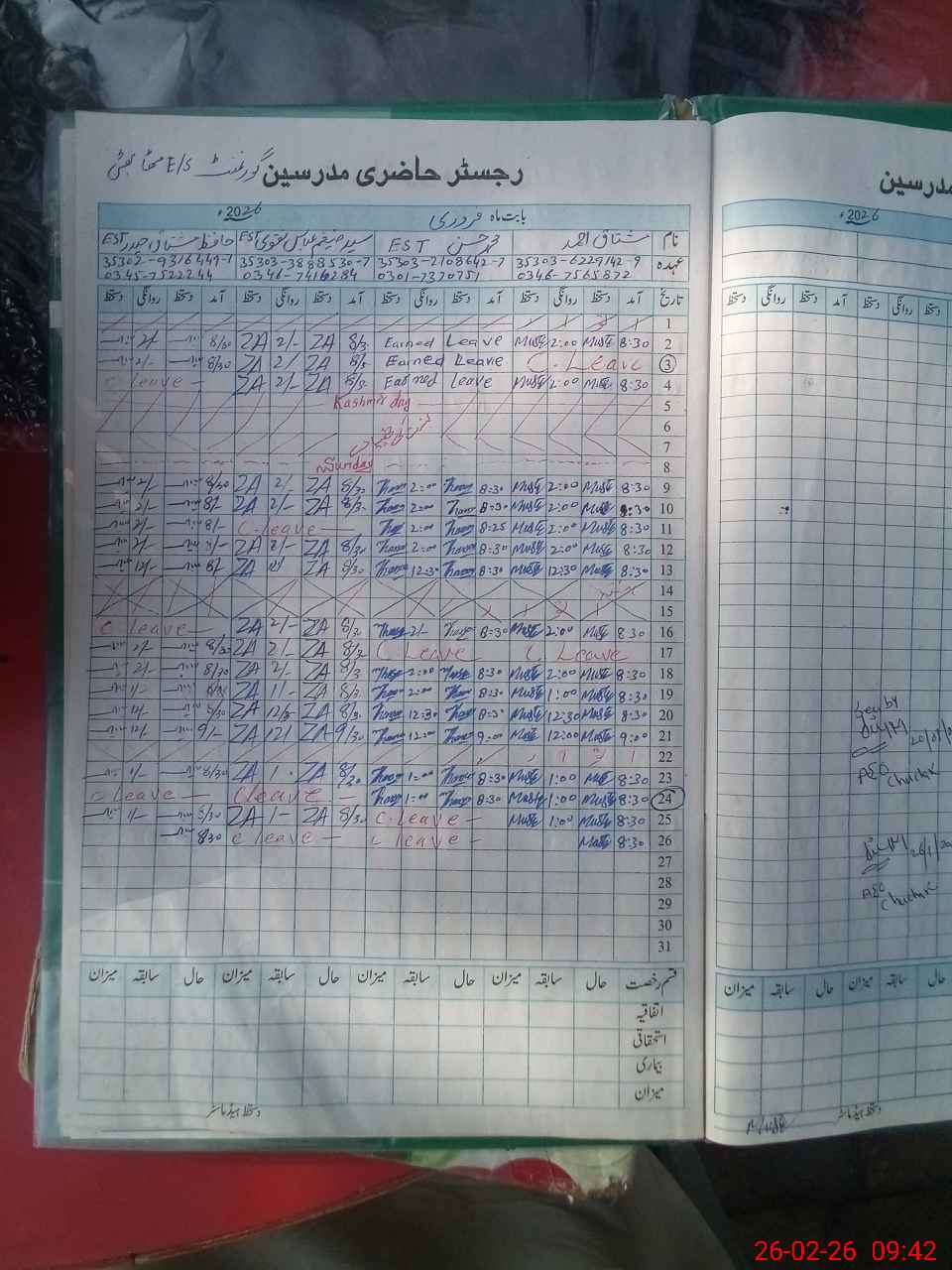 | CNIC | Full Name | Designation | R/C | Absence During Last Calender Month |