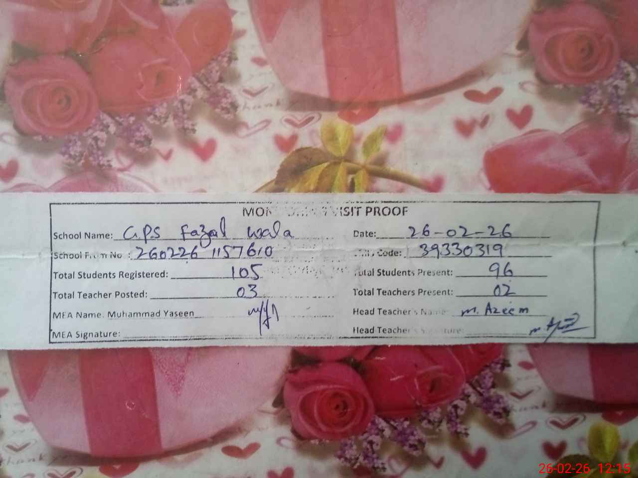 | EMIS Code: 39330319 | Name of School: GPS FAZIL WALA | |||