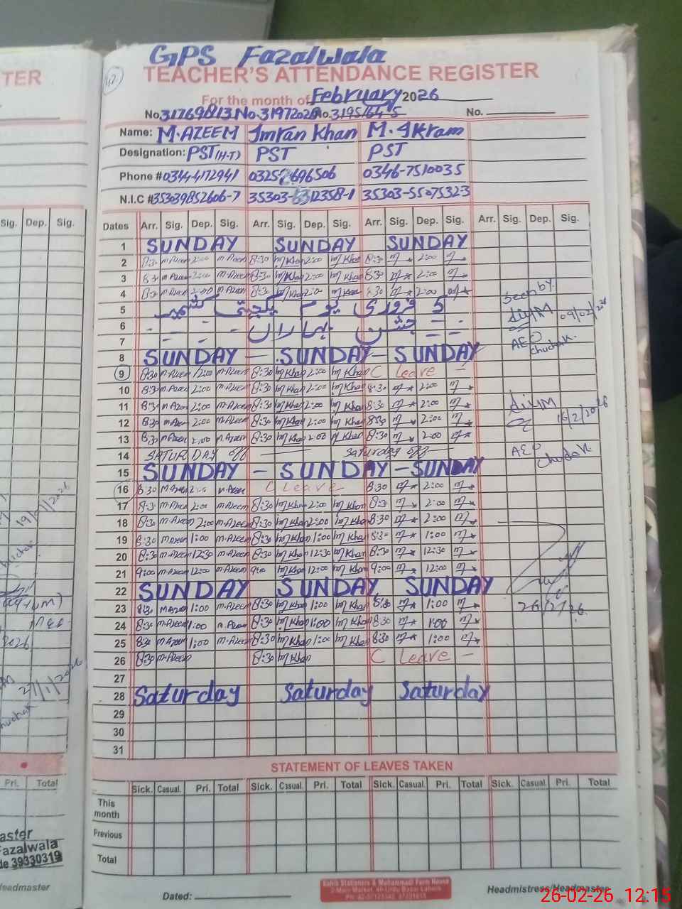 | Name: Im**** Kh**** Designation: (School Headmaster's/Headmistress's) Headmaster Phone/Cell Number: 03**** |