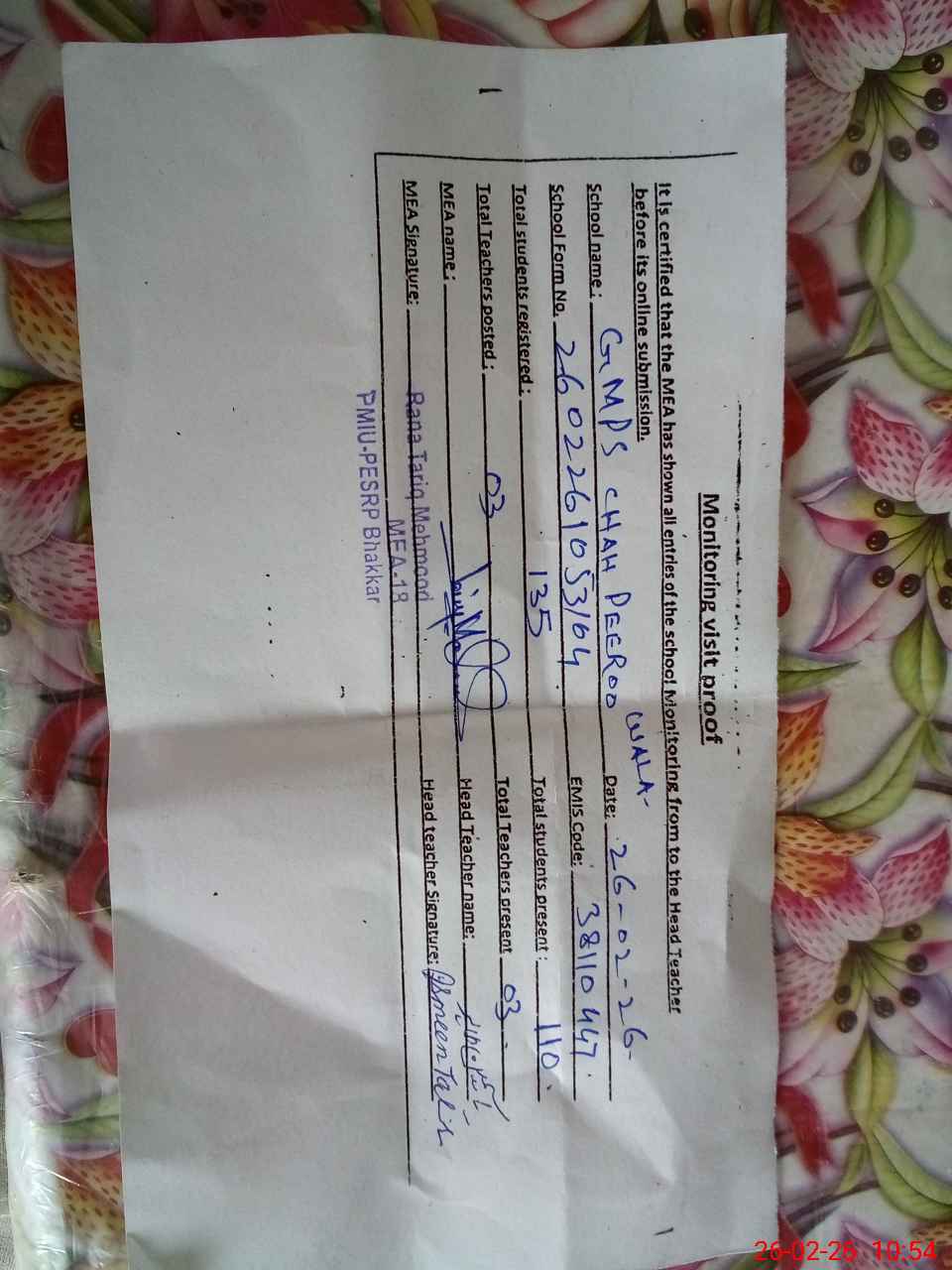 | EMIS Code: 38110447 | Name of School: GMPS CHAH PEERO WALA | |||