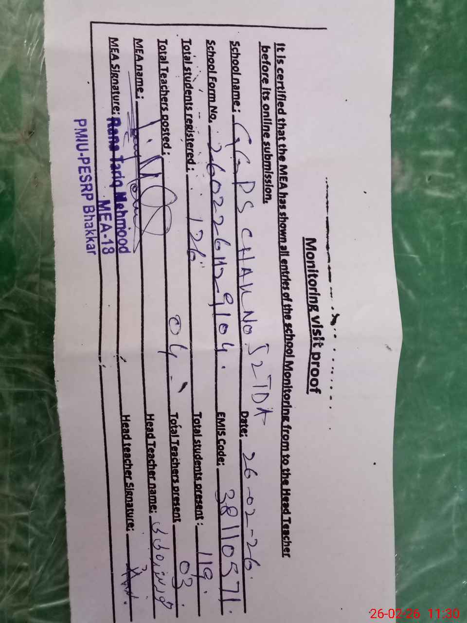 | EMIS Code: 38110571 | Name of School: GGPS CHAK NO.52/TDA | |||