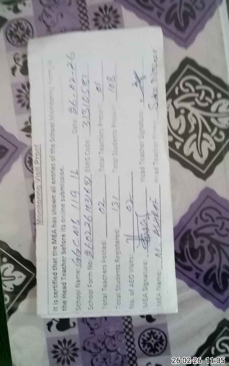 | Certified that this School was Inspected by the Undersigned MEA/DMO Today and the Information Stated Above is as Per Record. | |||||