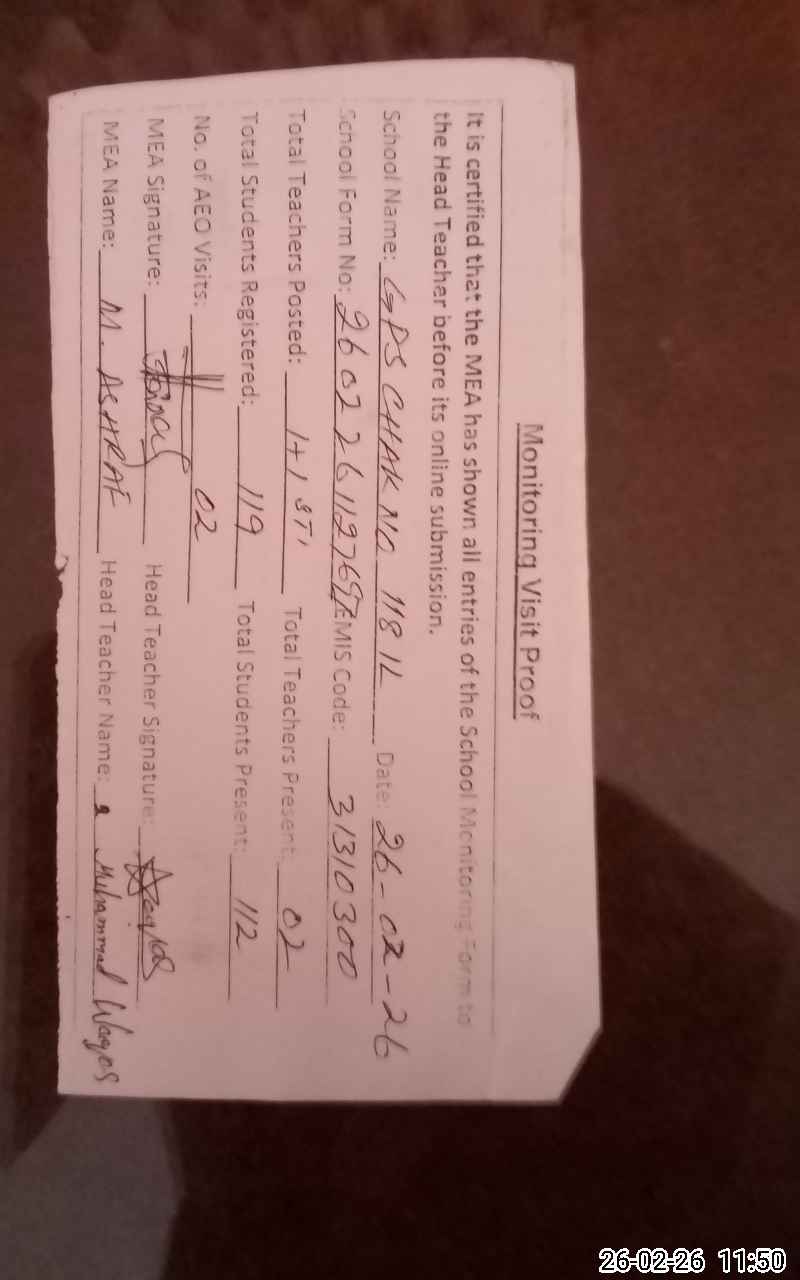 | EMIS Code: 31310300 | Name of School: GPS CHAK NO. 118/1-L | |||