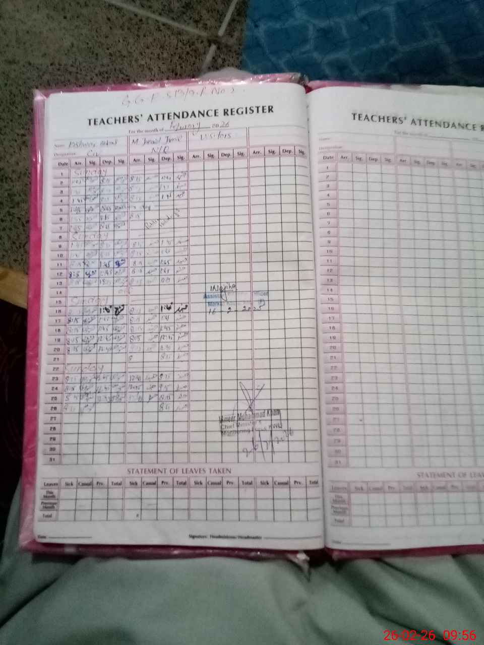 | Name: RU**** KO**** Designation: (School Headmaster's/Headmistress's) SST (SCIENCE ) Phone/Cell Number: 03**** |