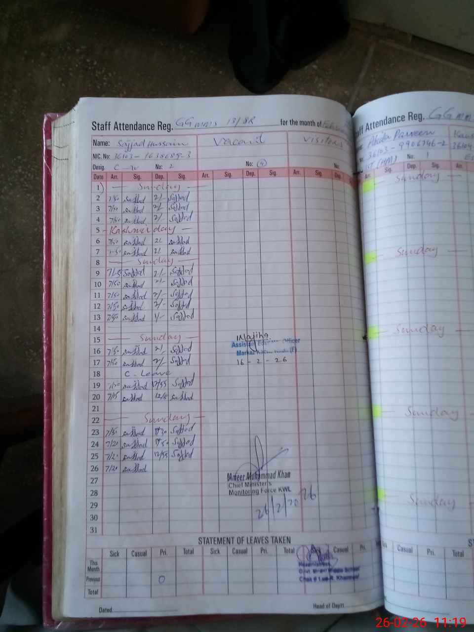 | 36**** | Sa**** Na**** Kh**** | PST Arts | Regular | 0 | 0 | 0 | 0 | 0 | 0 | 0 | 0 | 0 | Casual |