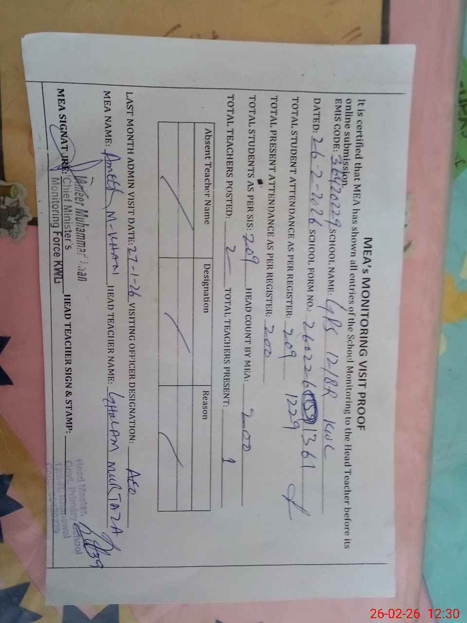 | EMIS Code: 36420229 | Name of School: GPS 12/8-R, KACHA KHUH | |||