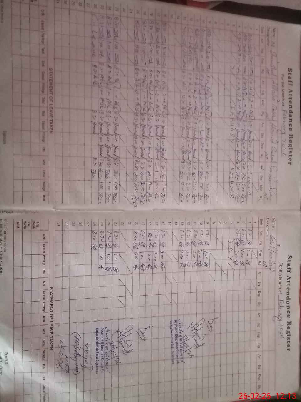 | Total no. of Classrooms: 6 No. of Classrooms Used for Teaching: 4 No. of Classrooms Storing Old Furniture, FTBs, etc: 0Comments if Any: AVERAGE CONDITION OF BUILDING AND SCHOOL NSB RECORD NOT MAINTAINED IN TAB AND REGISTER COVID SOPS DISPLAYED AND PARTIALLY FOLLOWING BY STAFF AND STUDENTS CLEANLINESS OF SCHOOL IS CARRIED OUT BY SWEEPER HIRED FROM NSB ATTENDANCE OF TEACHERS AND STUDENT |