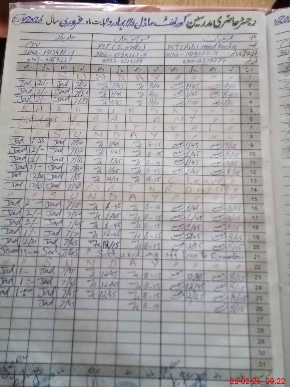 | Name: Um**** Ha**** Designation: (School Headmaster's/Headmistress's) PST Phone/Cell Number: 03**** |