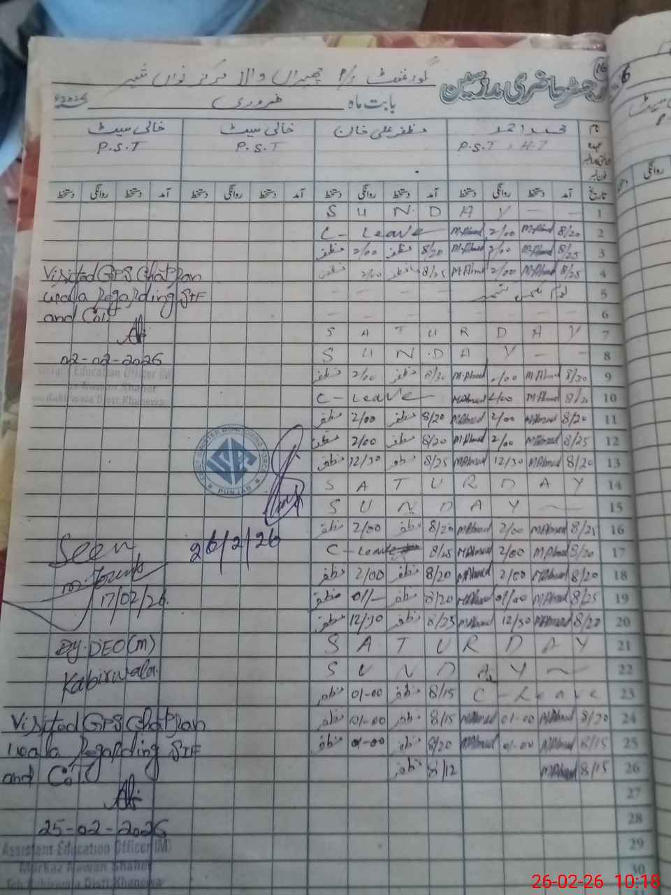| EMIS Code: 36410306 | Name of School: GPS CHAPRAN WALA, P/O SARDAR PUR, NAWAN SHEHR | |||