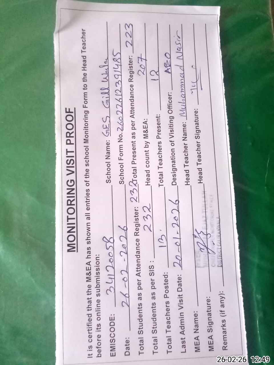 | EMIS Code: 34120058 | Name of School: GES GILL WALA | |||