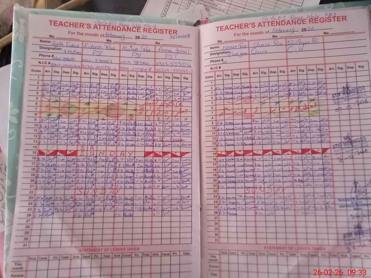 | CNIC | Full Name | Designation | R/C | Absence During Last Calender Month |
