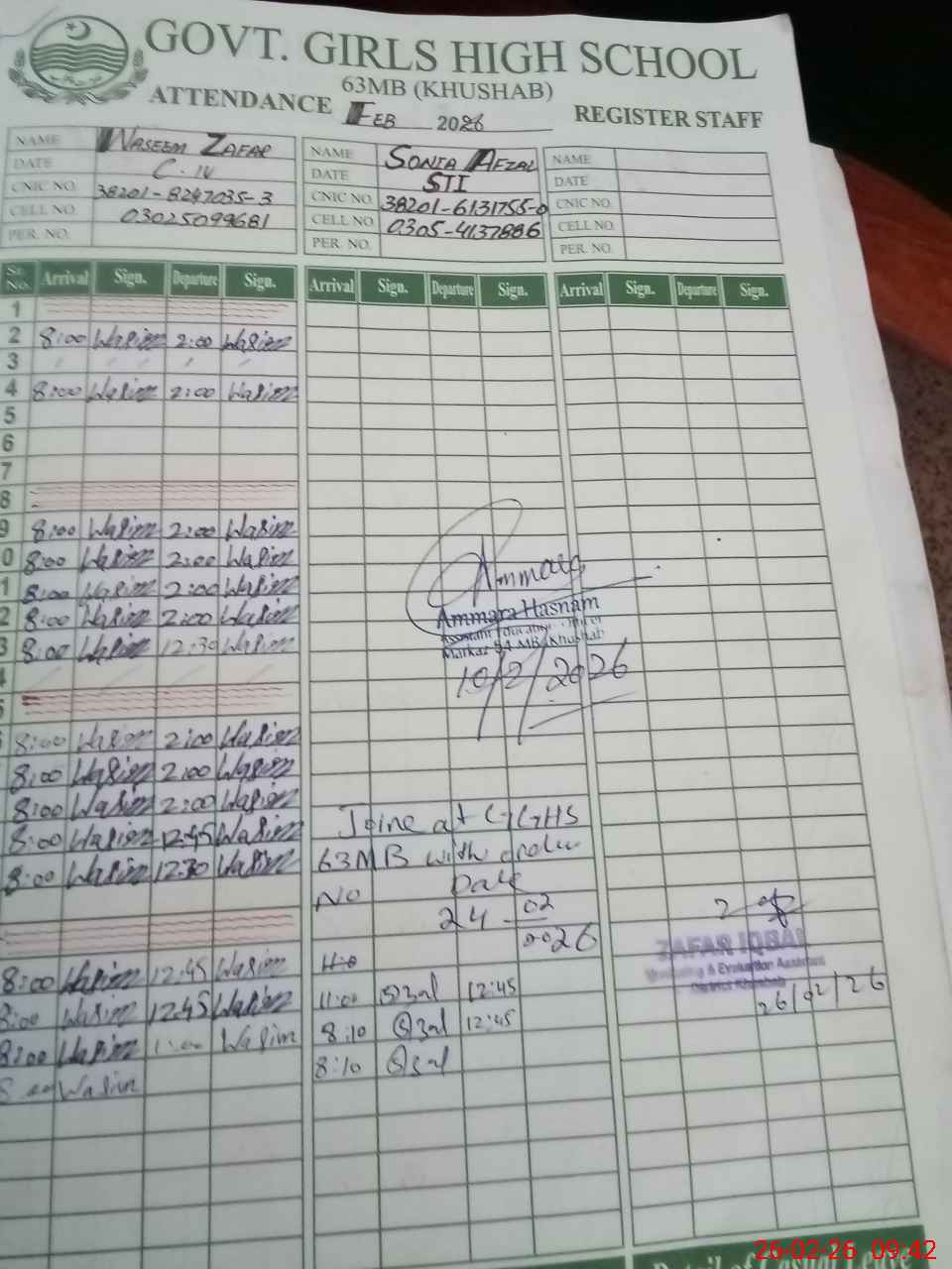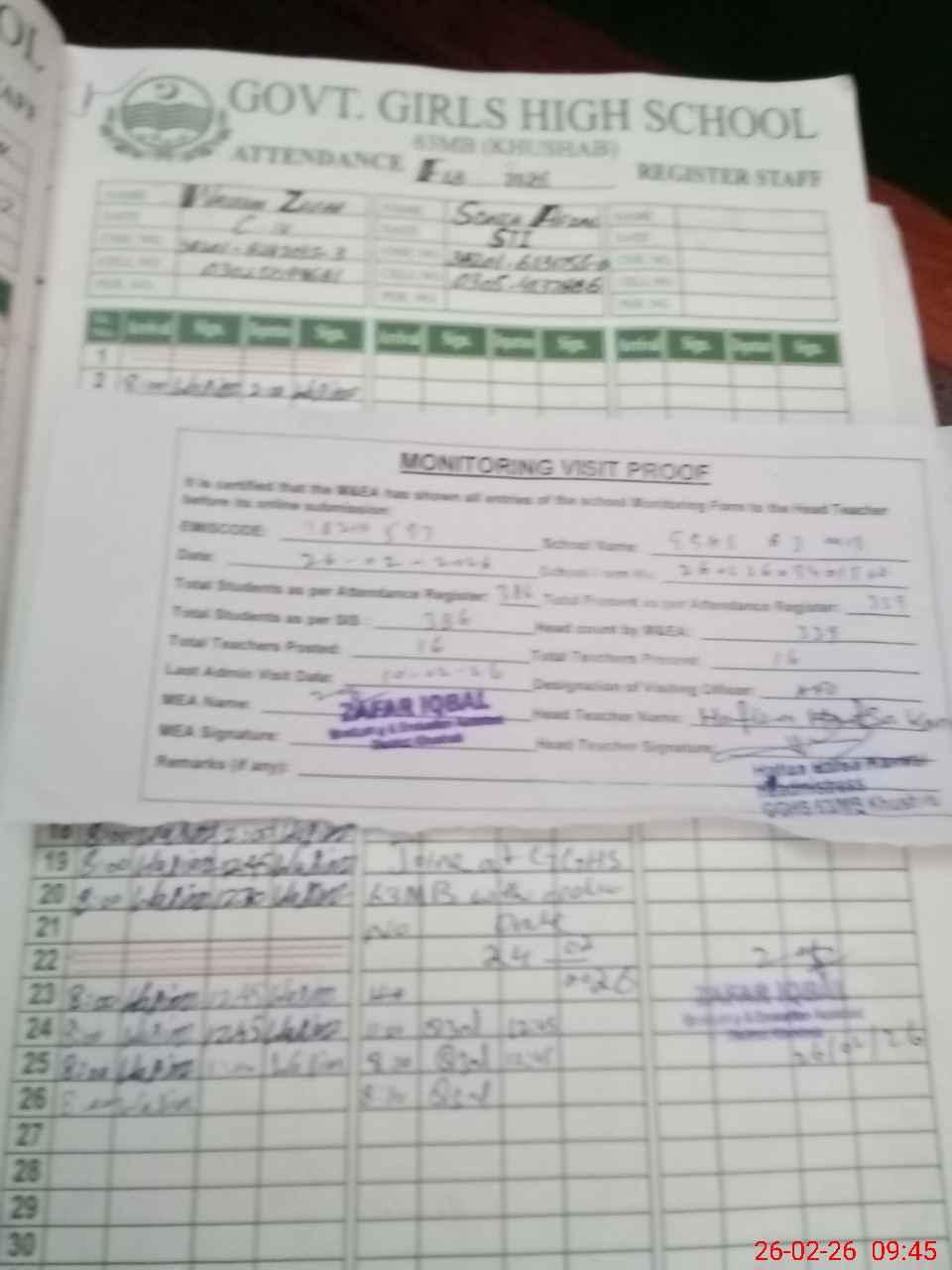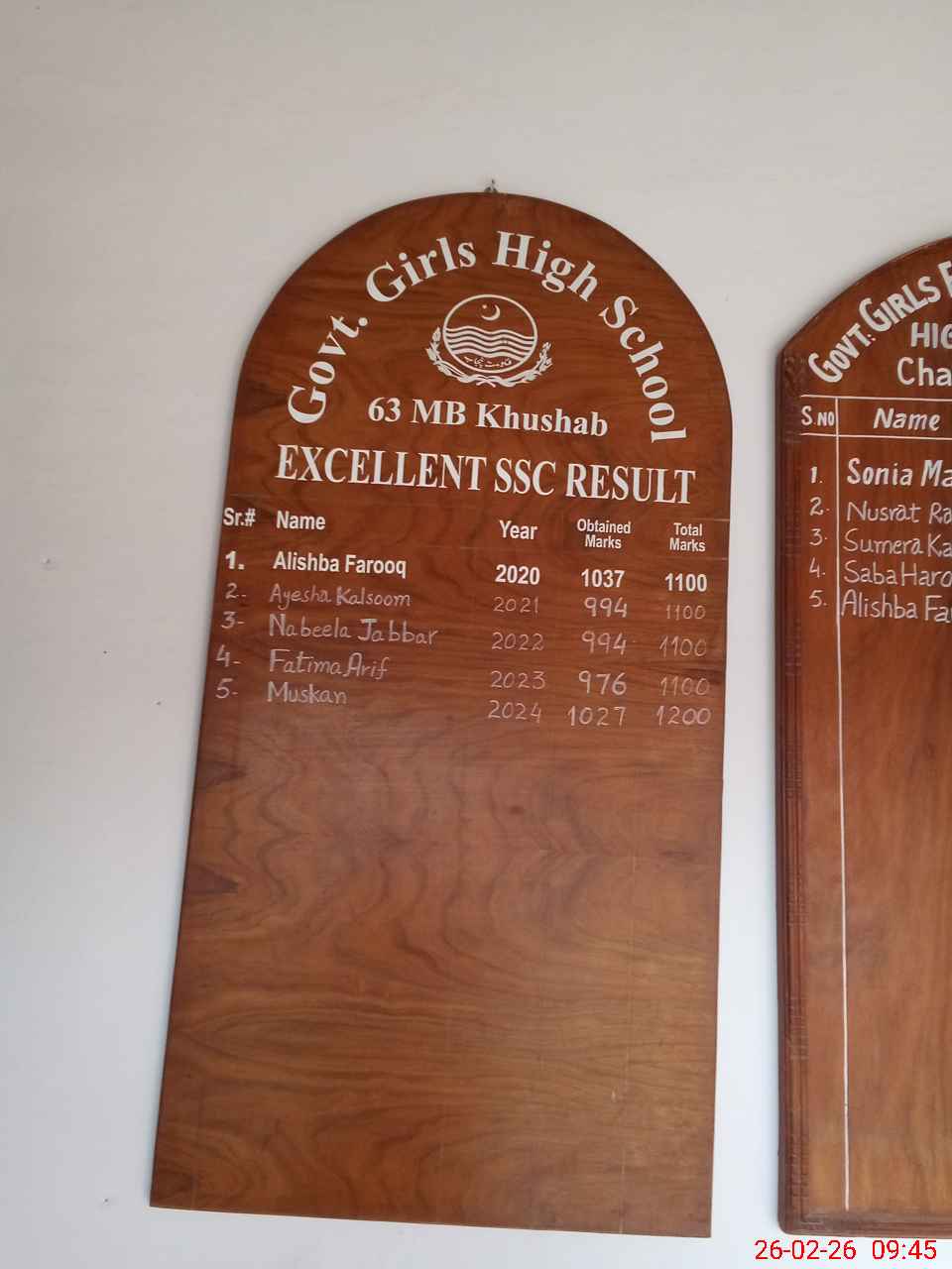 | District: KHUSHAB | Tehsil: KHUSHAB | Markaz: CHAK NO 54/MB (FEMALE) | Level: High | |