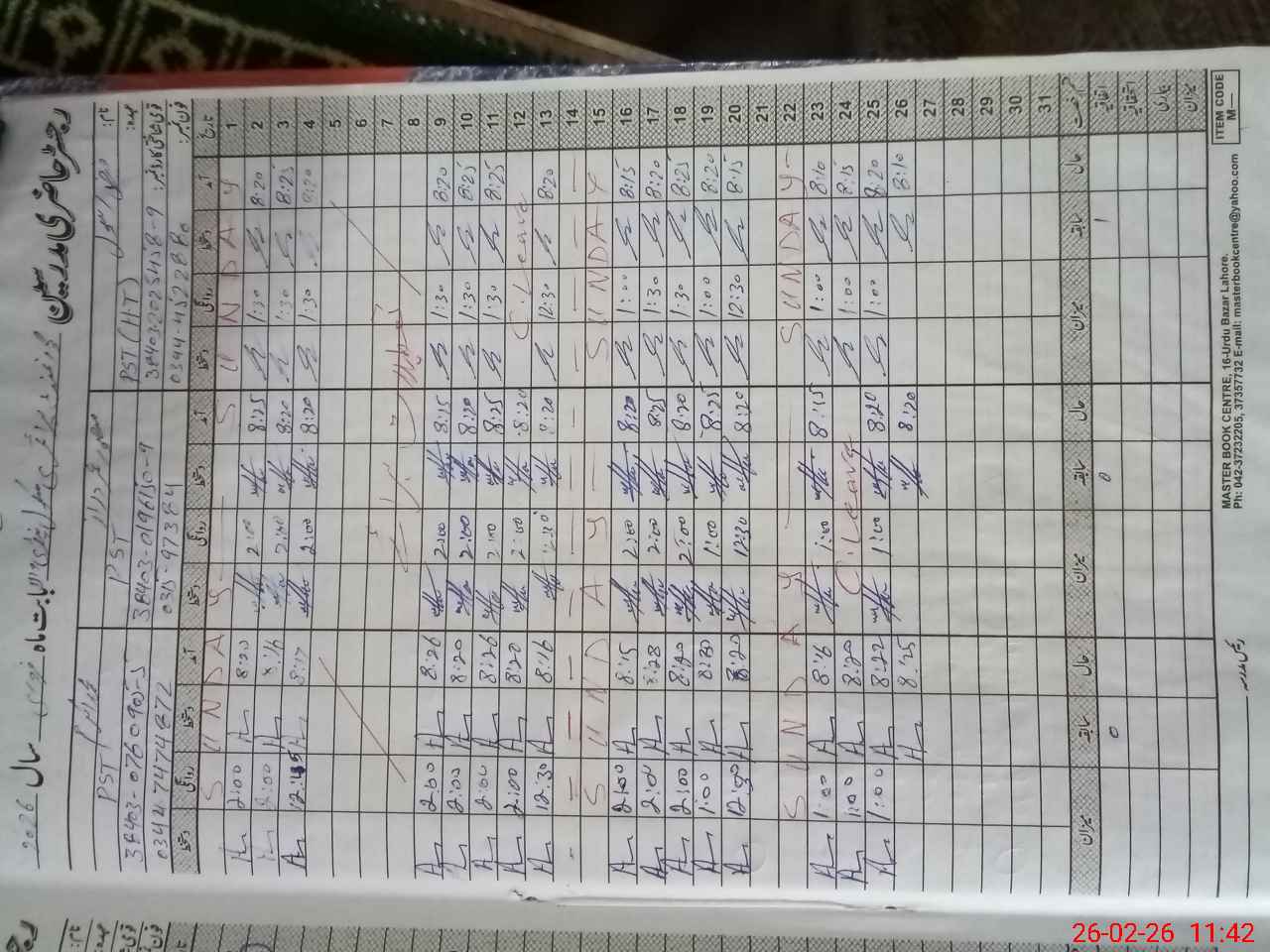 | CNIC | Full Name | Designation | R/C | Absence During Last Calender Month |