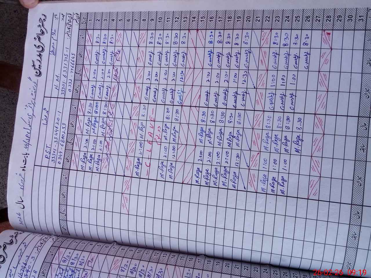 | CNIC | Full Name | Designation | R/C | Absence During Last Calender Month |