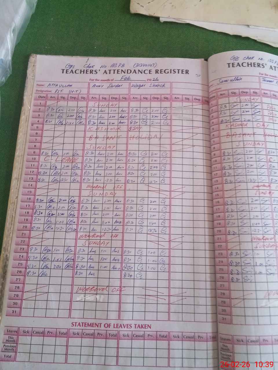 | Name: At**** Designation: (School Headmaster's/Headmistress's) PST Phone/Cell Number: 03**** |