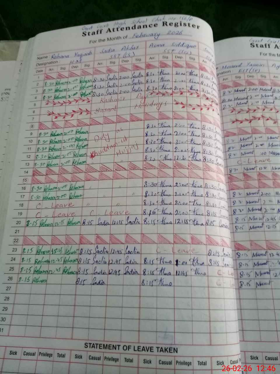 | Leave | Duty | Absent | Maternity | Medical | Ex- Pak |