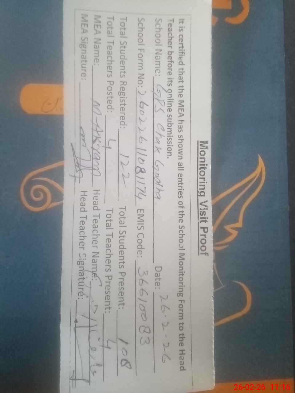 | EMIS Code: 36610083 | Name of School: GPS CHAK GODHA | |||