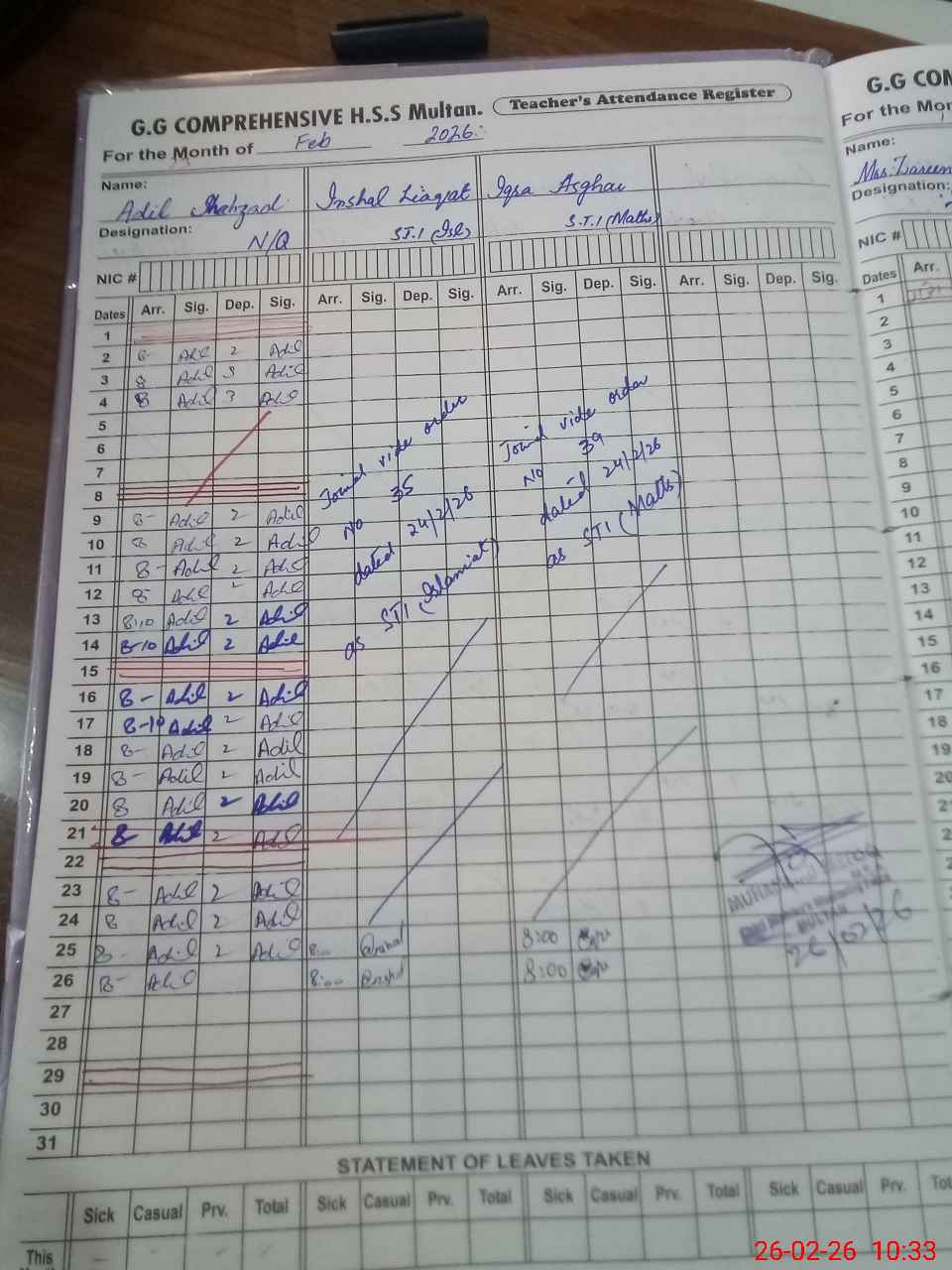| 31**** | Ba**** Kh**** | SST Science | Regular | 0 | 0 | 0 | 0 | 0 | 0 | 0 | 0 | 0 | Maternity |