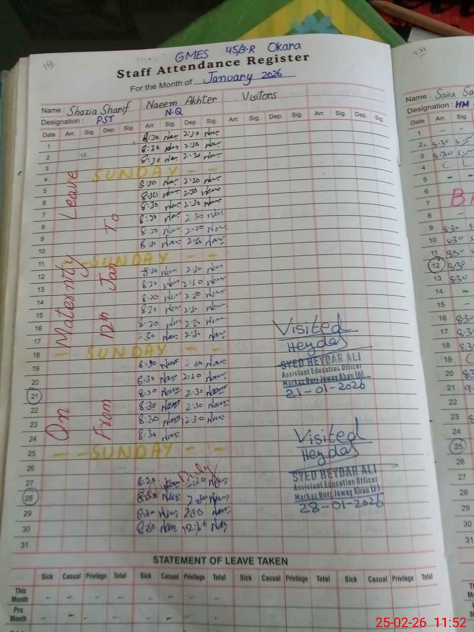 | 35**** | Sa**** Na**** | PST | Regular | 0 | 0 | 0 | 0 | 0 | 0 | 0 | 0 | 0 | Maternity |