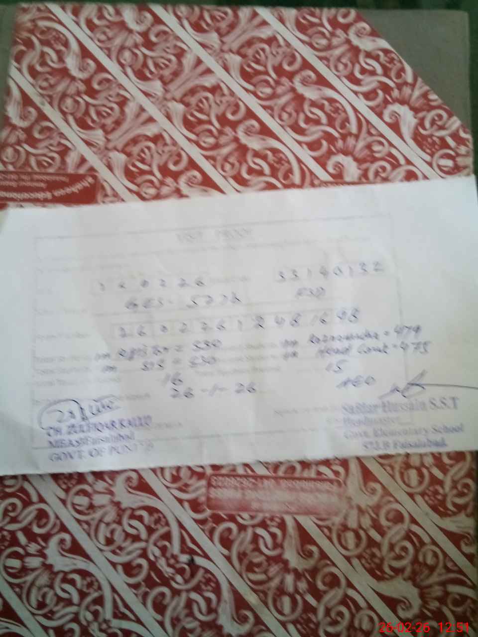 | Name: SA**** HU**** Designation: (School Headmaster's/Headmistress's) S.S.T.(Science) Phone/Cell Number: 03**** |