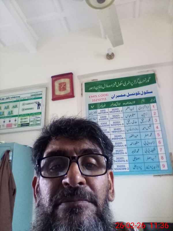 | Total no. of Classrooms: 7 No. of Classrooms Used for Teaching: 6 No. of Classrooms Storing Old Furniture, FTBs, etc: 0Comments if Any: PST Qaisar Hafiza Hanif on stop gap |